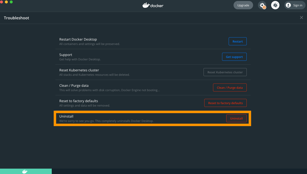 - Uninstall Docker Desktop