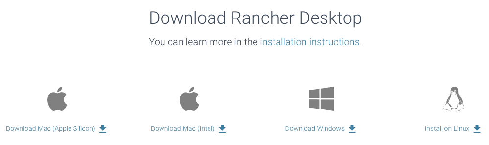 Navigate to https://rancherdesktop.io/ and select the platform to download.