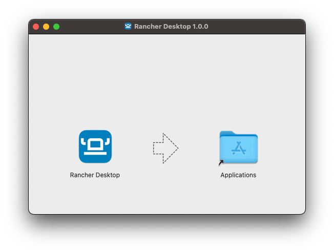 Open the downloaded DMG file and drag&drop Rancher Desktop into Applications.
