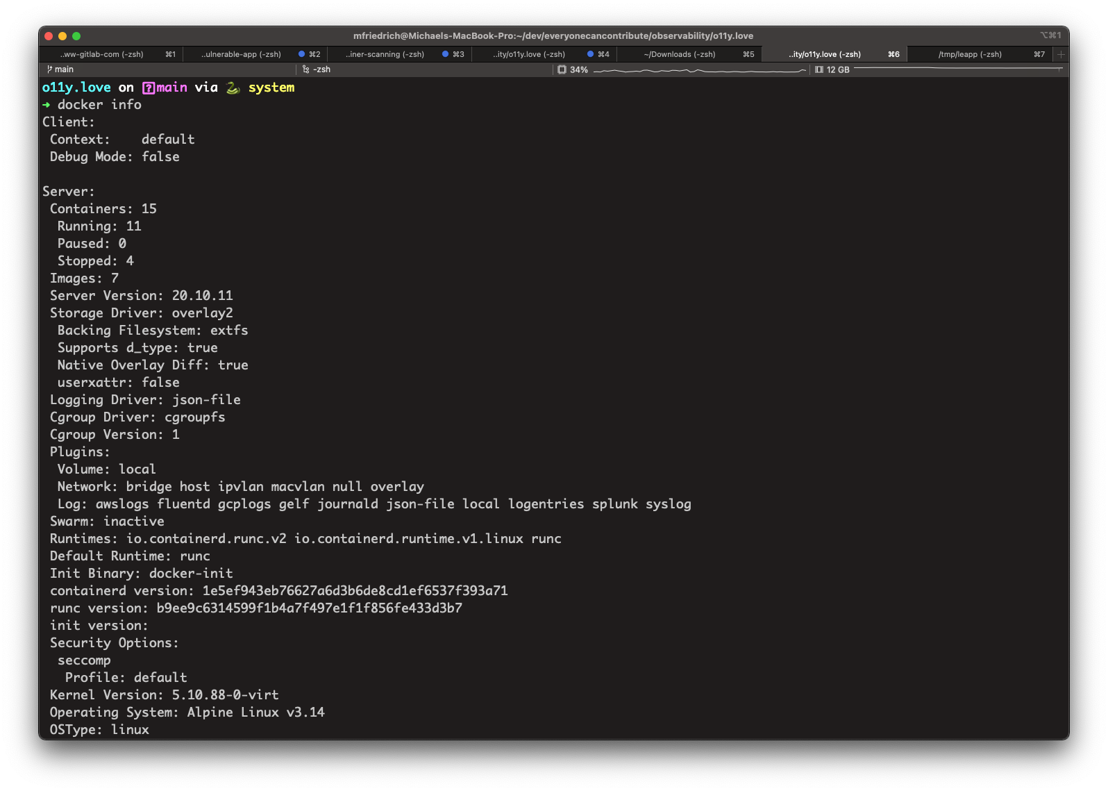 docker info output.