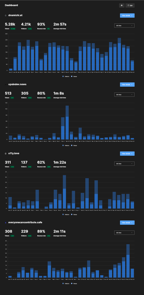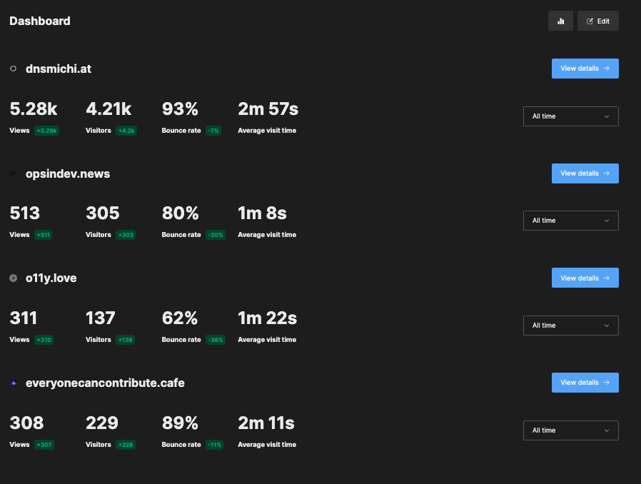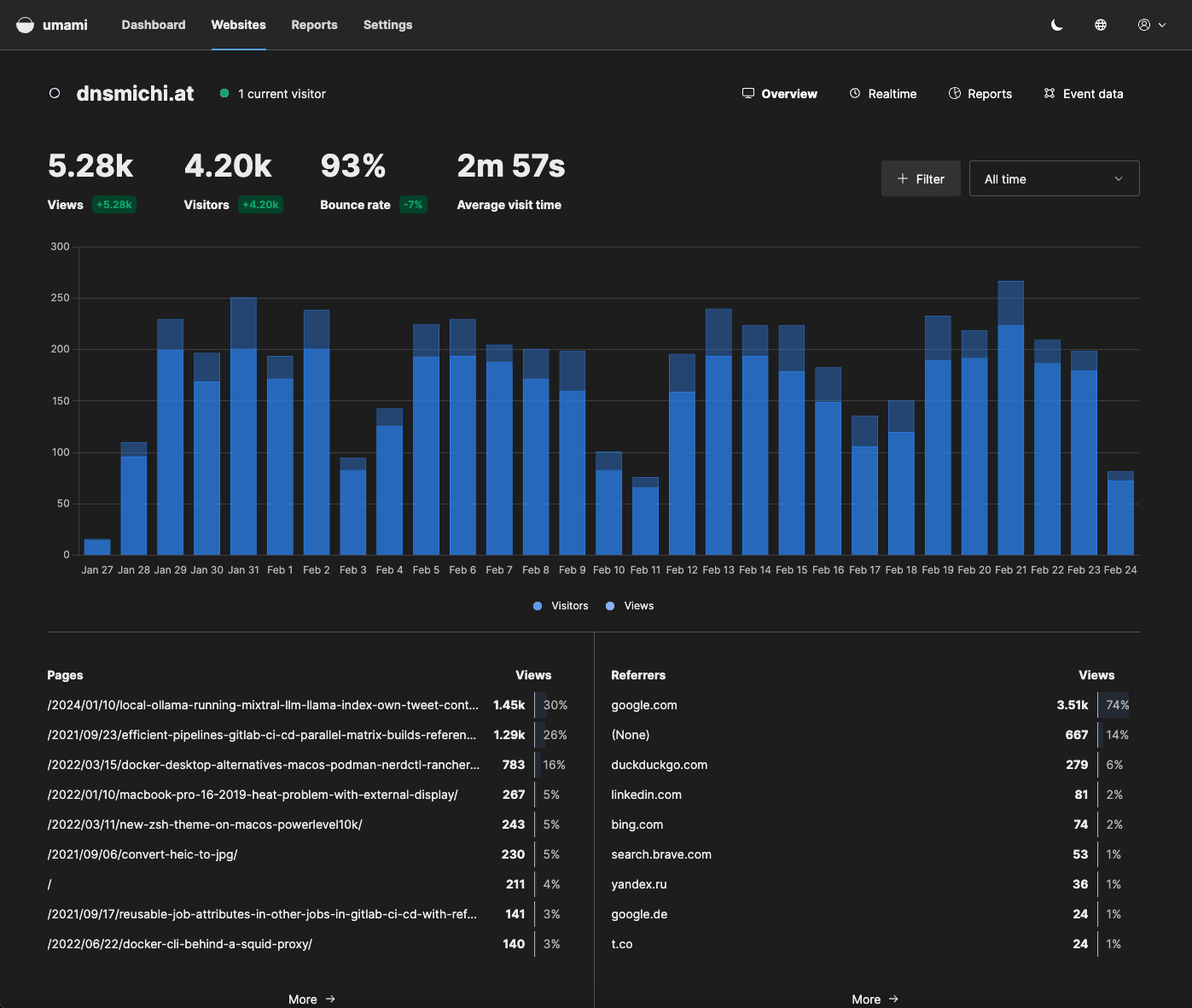 Overall, my impression is very positive, and I will continue using Umami in production. Next to exploring Google Analytics alternatives, I was able to expand my knowledge with Ansible and OpenTofu, and how TLS certificate renewal can be done with containers.