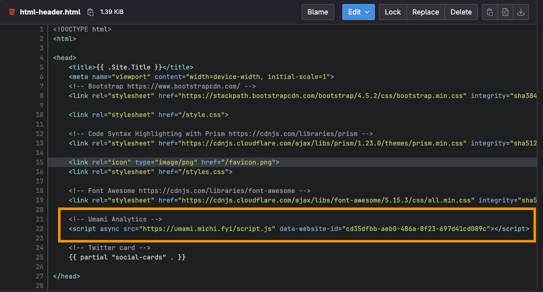 overridesand filemain.html - Copy the content below, and modify the Umami integration. The code extends the