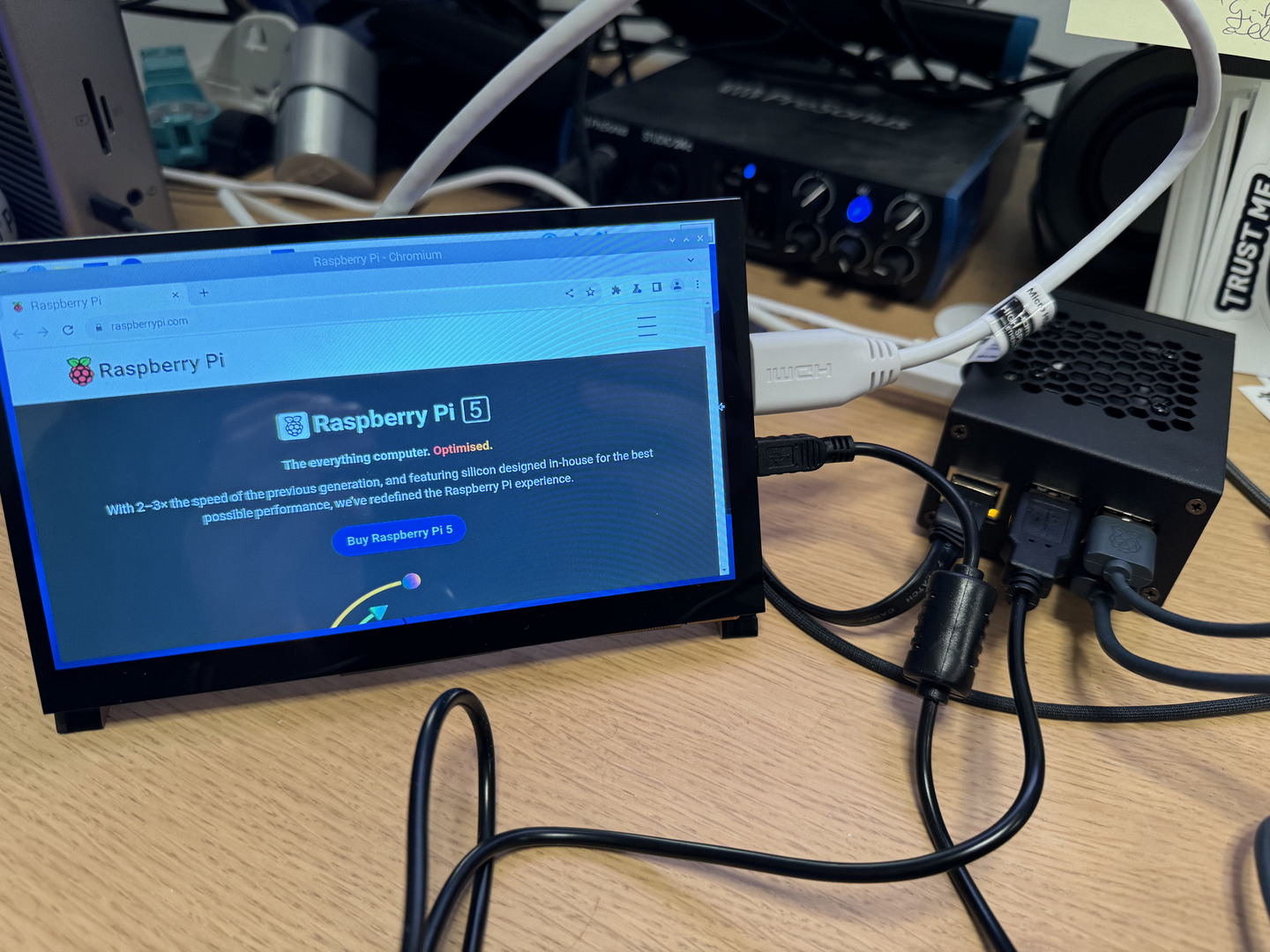 This blog post describes my learning journey with setting up a new Raspberry Pi 5. It starts with hardware considerations, and gets the bare minimum setup running with an SD card. Ultimately, the setup is modified with a metal case and touchscreen support. You can follow my learning path, or assemble everything in one go. The full hardware list, cost and where to buy is available at the end of the blog post. Future blog posts will explore local LLMs, CI/CD builds and more.
