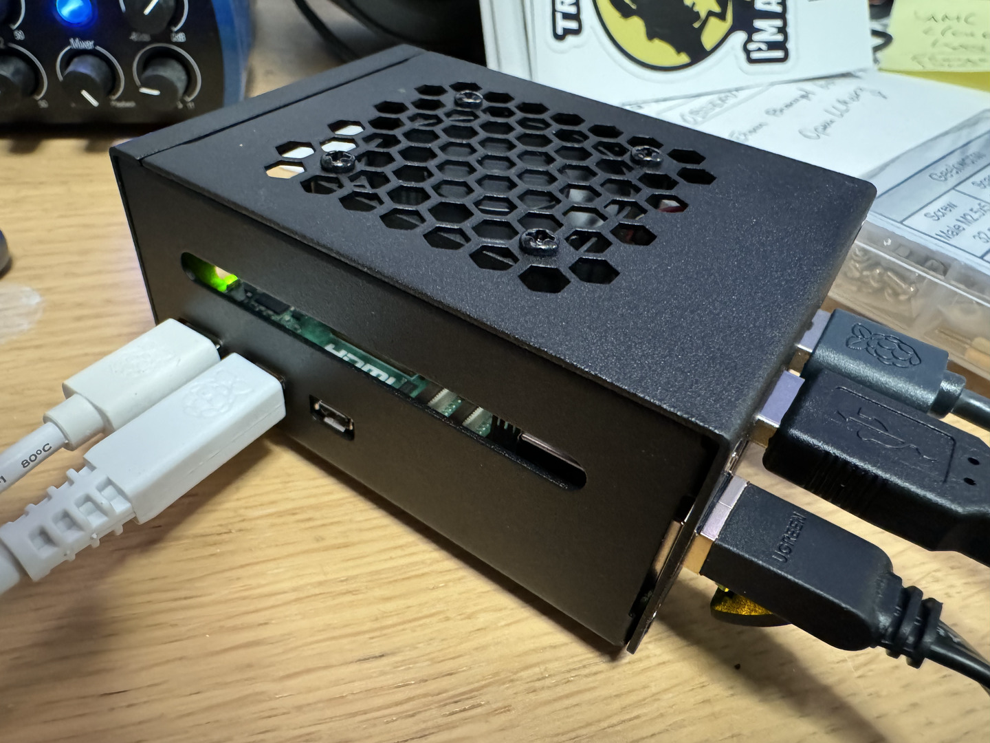 Alternatively, I have seen setups that keep the Pi active cooler on top of the Pi 5, and remove the GeeekPi cooler from the metal case. I will experiment with that in case the current cooling solution does not work.