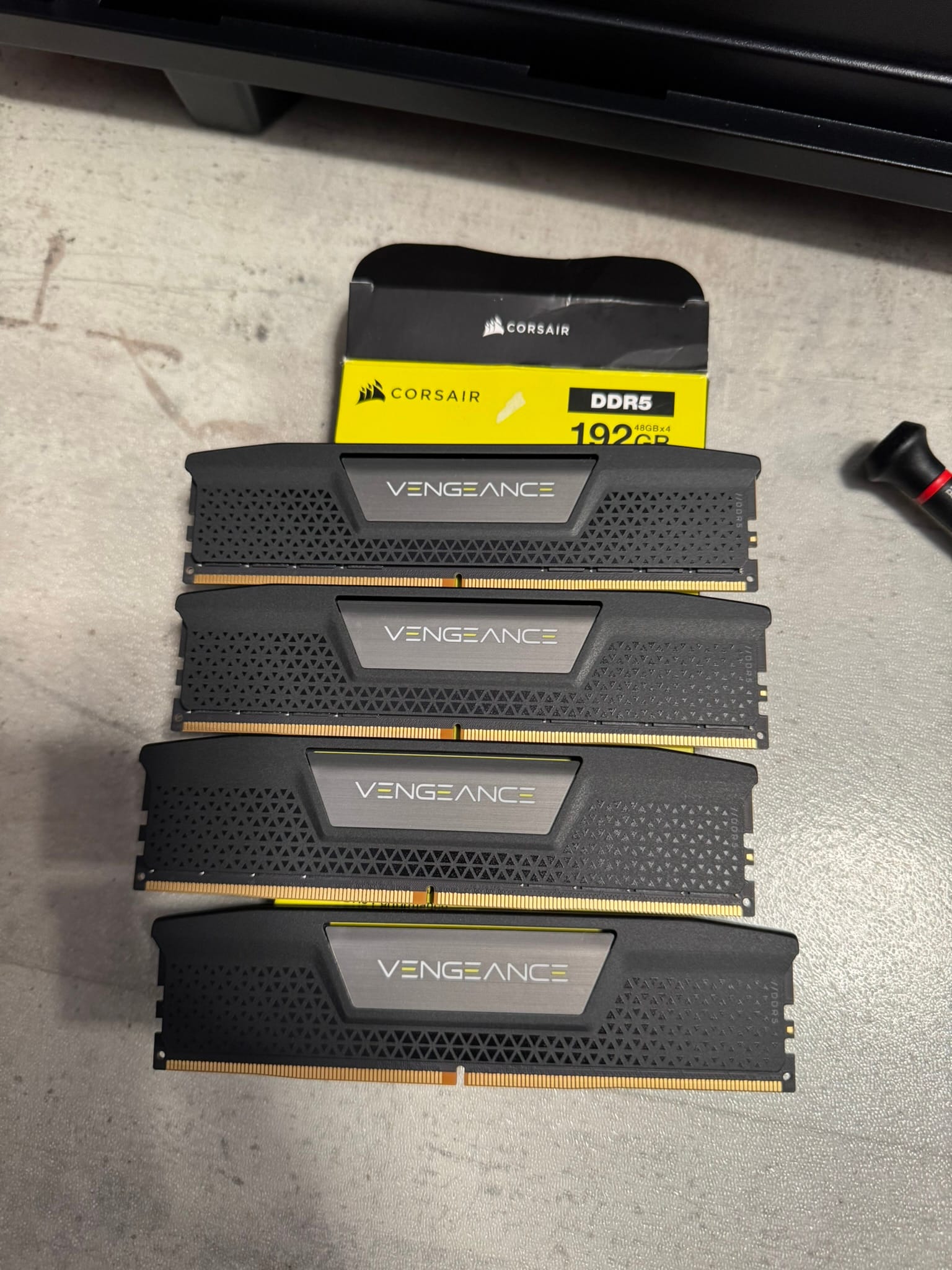 | RAM - upgrade | 192 GB DDR5-5200 Corsair Vengeance, 4x48GB Quadkit | Bought on Alternate |